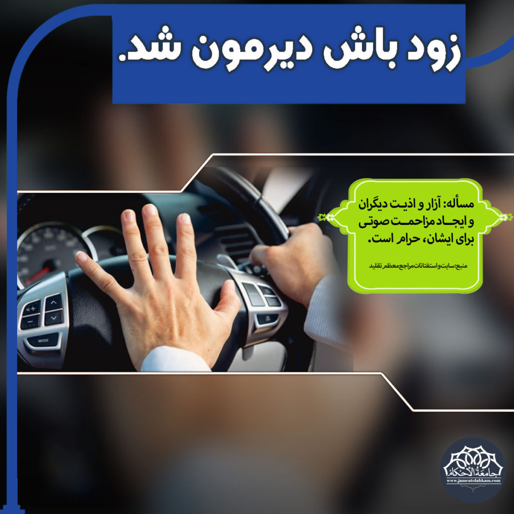 مساله: آزار و اذیت دیگران و ایجاد مزاحمت صوتی برای ایشان حرام است. (منبع: سایت و استفتائات مراجع معظم تقلید)